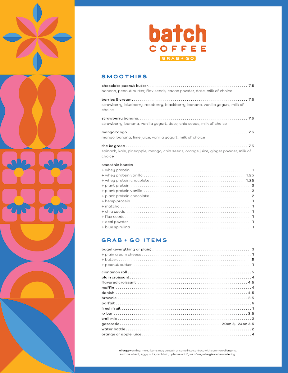 The menu at Batch Coffee Grab + Go features a delightful range of offerings, perfect for a quick breakfast or an afternoon snack. Indulge in their scrumptious scones and cinnamon rolls, the latter receiving rave reviews for their irresistible flavor and fluffy texture. If you're in the mood for something more hearty, the egg bites are a popular choice at just $4.50, offering a delicious protein-packed boost. Sweet tooth? Treat yourself to a GF peanut butter cookie or a classic chocolate chip cookie, both priced at a pocket-friendly $3.00. And don't forget to grab the canned Nitro Cold Brew at $4.75 for a refreshing caffeine hit.